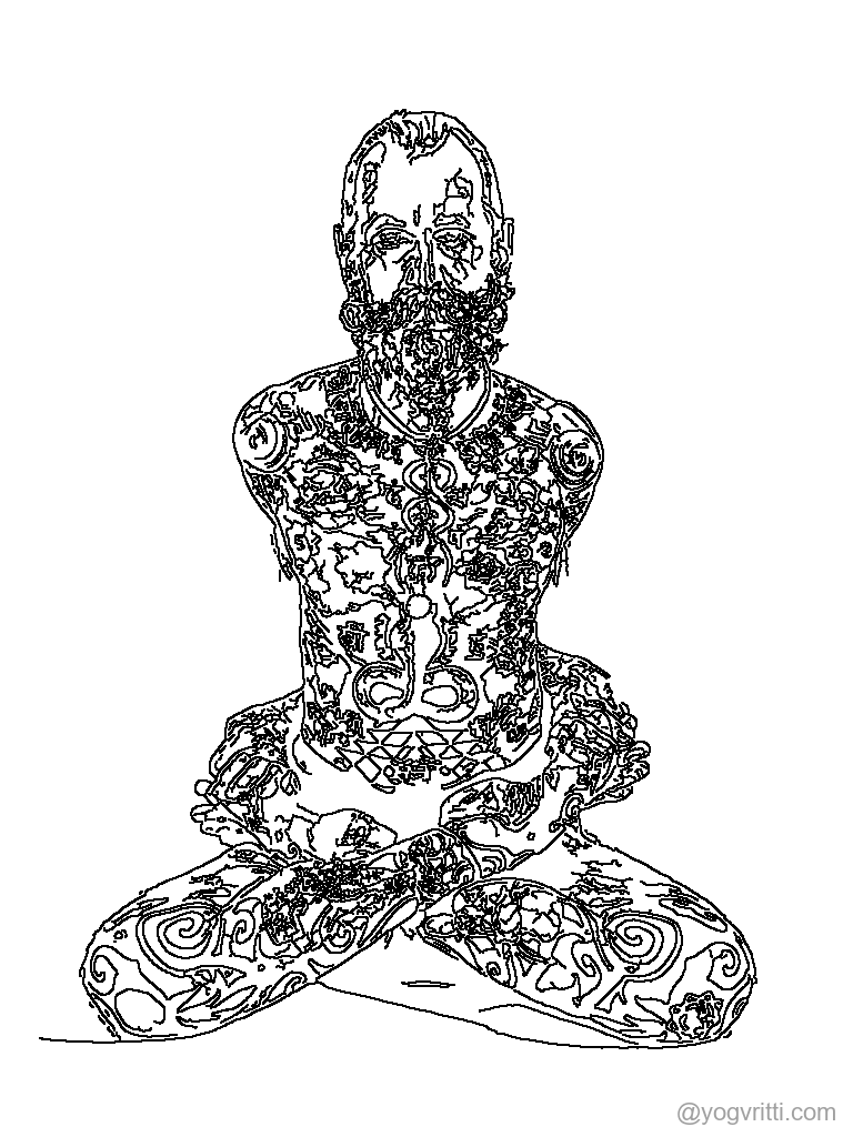 Baddha Padmasana (Bound Lotus) is Padmasana with arms crossed behind the back gripping opposite toes, deeply opening the chest and shoulders.