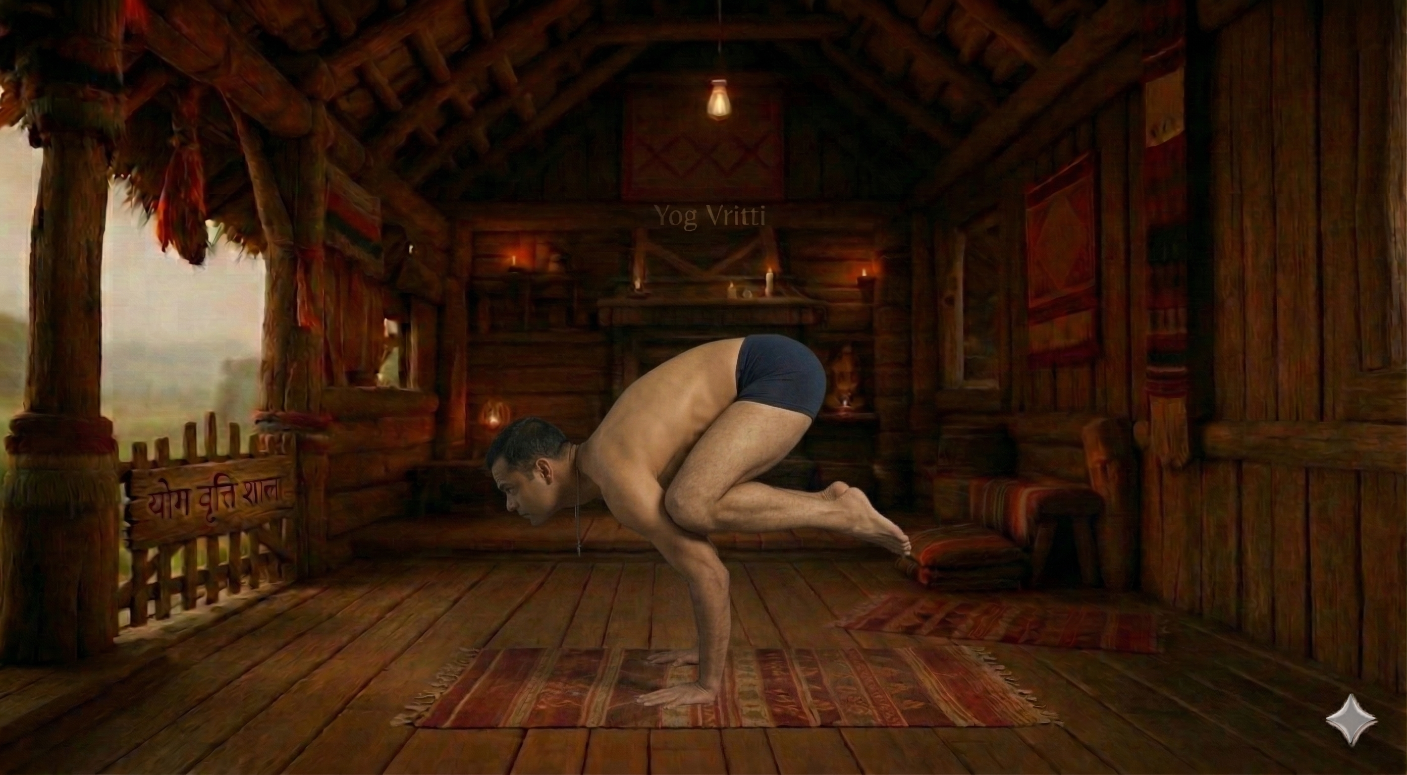 Bakasana (Crane Pose) is an arm balance that builds strength in the arms, wrists, and core. It's a more advanced version of Kakasana, requiring straight arms and greater core engagement. This pose cultivates confidence and mental focus.